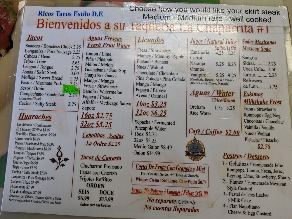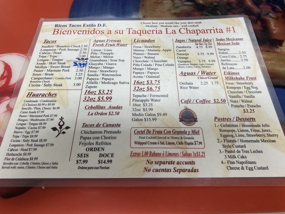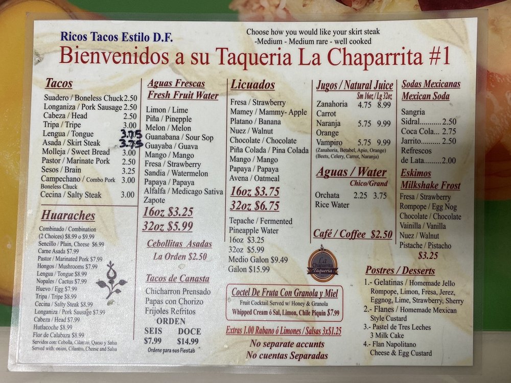 Highlighted by customers as a must-visit for authentic Mexican cuisine, La Chaparrita Grocery impresses with options like Tongue, Pastor, and Asada tacos bursting with flavors. The Cebollitas Asadas on the side add an extra kick to the meal. The extensive selection of Agua Frescas, including unique flavors like Melon and Guava, perfectly complement the savory dishes.